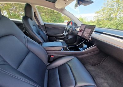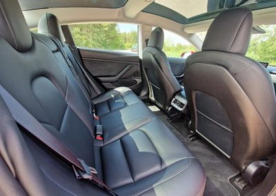 Safety: Tesla’s Model 3 has received high safety ratings from various automobile safety agencies, including a five-star rating from the National Highway Traffic Safety Administration (NHTSA). The car’s design includes a low center of gravity, which helps reduce the risk of rollover, and a rigid body structure to enhance occupant protection.
