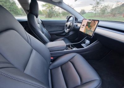 Minimalist Design: The Model 3’s interior is sleek and minimalist, with few physical buttons. The large central touchscreen acts as the hub for nearly all vehicle controls, contributing to a modern, high-tech driving environment.