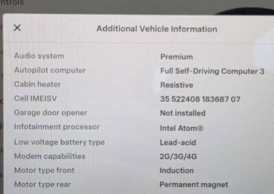 • Future Software Potential: The car has the Hardware 3.0 (HW3) computer, which is required for the latest FSD software stack. While the EU regulatory environment is more restrictive than the US, owning the FSD package means the car is „future-proofed“ for any approved advancements in automated driving features.