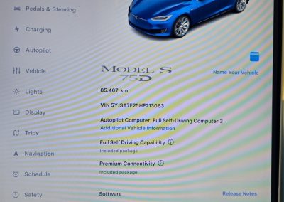 Autopilot and Advanced Safety Features: The Tesla Model S 75D is equipped with Tesla’s Autopilot system, offering advanced driver-assistance features like adaptive cruise control, lane keeping, and automatic emergency braking.