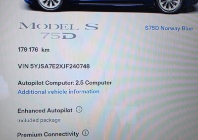 Remaining Battery and Drive Unit Warranty: This is the critical protection. The 75D battery and motor are covered for 8 years or unlimited miles (Tesla changed the terms in 2017/2018; check the specific vehicle’s details, but generally the battery warranty on the S 75D is 8 years). For a 2018 model, this likely extends to 2026, providing years of coverage against battery degradation or failure.