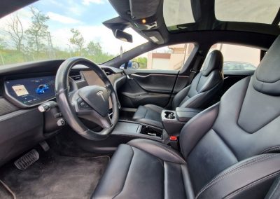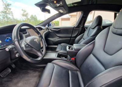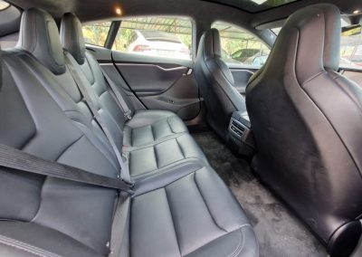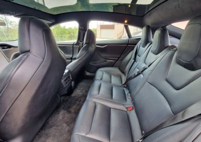 Spacious Cabin: The Model S provides ample space for passengers, with generous legroom and cargo space, including a large rear trunk and a front trunk („frunk“) for additional storage.