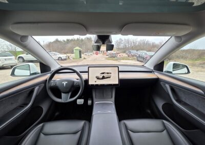21″ Überturbine Wheels: The staggered setup (wider rear tires) provides immense grip and a muscular stance. While this does reduce range compared to the Long Range’s 19″ or 20″ wheels, it significantly enhances cornering stability and gives the vehicle a premium, aggressive visual identity that is a primary differentiator in the used market.
